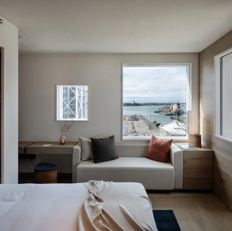 In Tāmaki-makaurau Auckland, Hotel Britomart have paved the way for the future of sustainable hotel design by achieving New Zealand’s first 5 Green Star hotel rating by the New Zealand Green Building Council. The rigorous Green Star certification process required every design, planning, and building decision to mitigate impact on the environment. This has resulted in a highly efficient building that will produce 50% fewer greenhouse gas emissions than a building that meets the minimum requirements of the New Zealand building code.